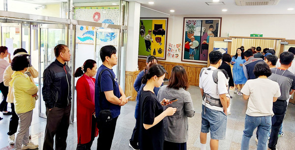 제21대 대통령선거가 29일과30일 사전투표를 시작으로 6월3일 본투표가 진행된다. 사진은 영광읍 투표소. 채종진 기자 admin@ygnews.co.kr 다른기사 보기 저작권자 © 영광신문 무단전재 및 재배포 금지 당신만 안 본 뉴스 제5회 영광 디카시 공모전 지상전 ‘光風’으로 나누는 기본소득 ‘국회의장상’ 권혁범 여민동락공동체 대표 영광키즈카페 어디에 어떻게 짓나? 수능시험 무사 종료 학생수 감소 심각 햇빛·바람이 만드는 영광의 미래 ③ 분산에너지특구 기회의 문 열렸다 제5회 영광 디카시 공모전 지상전 댓글삭제 삭제한 댓글은 다시 복구할 수 없습니다. 그래도 삭제하시겠습니까? 비밀번호 닫기 기사 댓글 0 댓글 접기 로그인 후 이용 가능합니다. 댓글 내용입력 비회원 로그인 이름 비밀번호 댓글 내용입력 댓글쓰기 계정을 선택하시면 로그인·계정인증을 통해 댓글을 남기실 수 있습니다. 회원 로그인 비회원 글쓰기 이름 비밀번호 자동등록방지 로그인 옵션 창닫기 주요기사 생사의 기로에... 장세일 군수, 이재명 대통령과 ‘邂逅’ ‘햇빛바람 기본소득’ 한번 더, 전국무대 알렸다 ‘아이디어 돋보인’ 구수‧대신 어촌계 ‘대상’ 마을 빈공간 활용 태양광 ‘발전수익’ 고리 2호기 수명연장 승인에 ‘촉각’