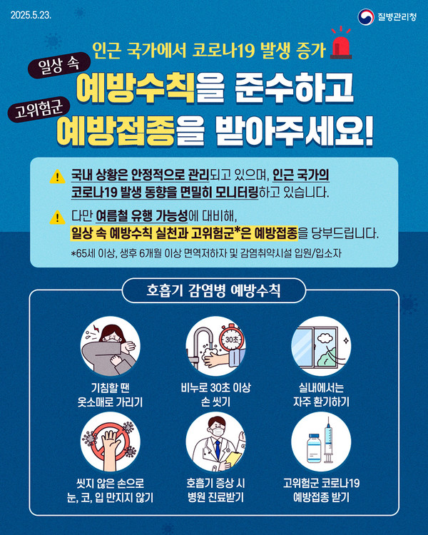 코로나19 등 호흡기 감염병 예방을 위해서는 유증상 시 마스크 착용, 비누로 30초 이상 손 씻기, 주기적 환기 등 개인 방역수칙 준수가 무엇보다 중요하다.