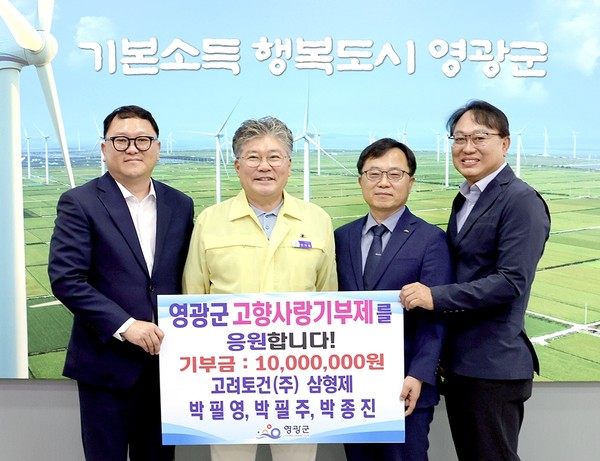 고려토건(주) 박필영, 박필주, 박종진 삼형제가 고향사랑기부금 1천만원을 기탁해 영광 발전을 위한 따뜻한 나눔을 실천했다.