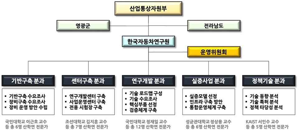 e-모빌리티연구센터의 시작은 2011년으로 거슬러 올라간다. 당시 영광군은 대마전기차산업단지의 활성화를 위해 e-모빌리티라는 신산업의 선점을 기획하며, 기업 유치를 위한 핵심 전략으로 한국자동차연구원을 선택했다. 이후 영광군과 한국자동차연구원, 산업통상자원부는 「e-모빌리티 클러스터 구축사업 기획」이라는 원대한 계획에 착수했다. 전국의 산학연관 전문가 61명을 소집하여 진행된 이 대규모 기획 연구는, 인프라 구축부터 연구개발, 실증사업에 이르는 구체적이고 단계적인 로드맵을 정의하며 영광을 미래 교통 환경의 중심으로 세우는 청사진을 그렸다.