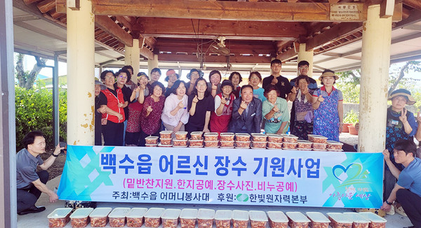 백수읍 어머니봉사대(회장 이영임)은 최근 백수읍 하사리 사등경로당에서 지역 내 취약계층을 위한 ‘여름김치 나눔 행사’를 진행하며 지역사회에 따뜻한 정을 나눴다.