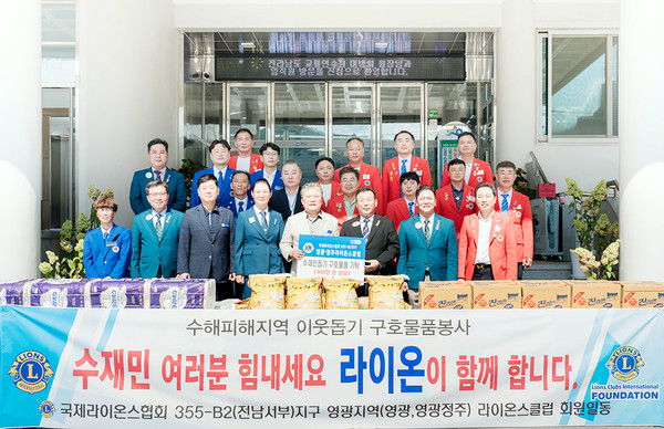 국제라이온스협회 355-B2지구(총재 최경윤) 영광정주라이온스클럽(회장 이준명), 영광라이온스클럽(회장 김재운)이 지난 21일 최근 집중호우로 피해를 입은 영광군 주민을 위해 400만원 상당의 생필품을 기탁했다.
