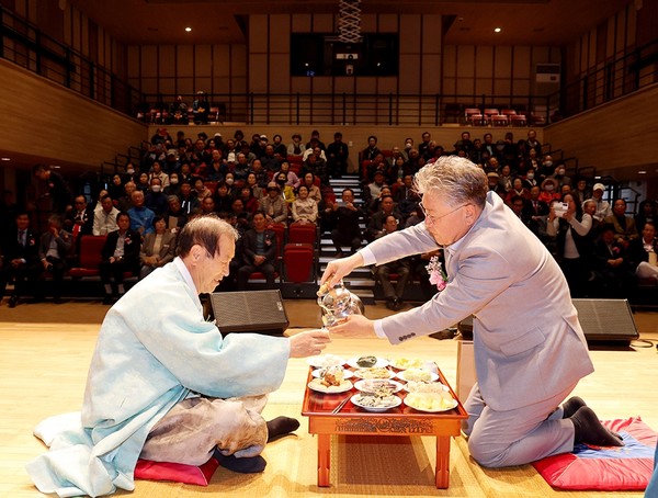 특히 이날 향음례에서는 장세일 영광군수가 지역 원로 대표로 참여한 유공승 원임 전교께 술잔을 올리는 공경의 예를 갖추어 유교문화의 정신과 경로효친 사상을 되새겼다.