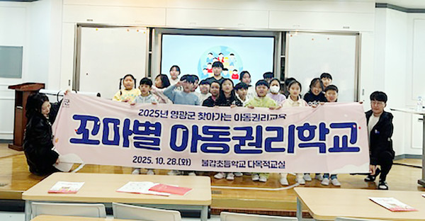 영광군은 10월 29일 불갑초등학교, 11월 6일 군서초등학교에서 총 51명의 아동을 대상으로‘2025년 꼬마별 아동권리학교’를 운영했다고 밝혔다.