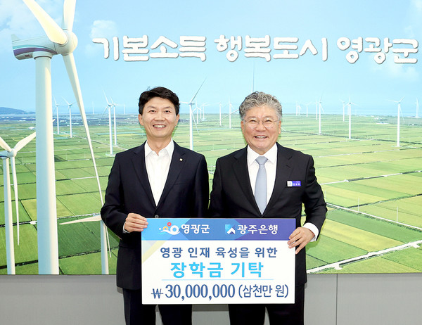 ㈜광주은행 영광지점(지점장 최창식)은 지난 11일 영광군을 방문해 영광군 인재육성기금으로 장학금 3천만원을 기탁했다.