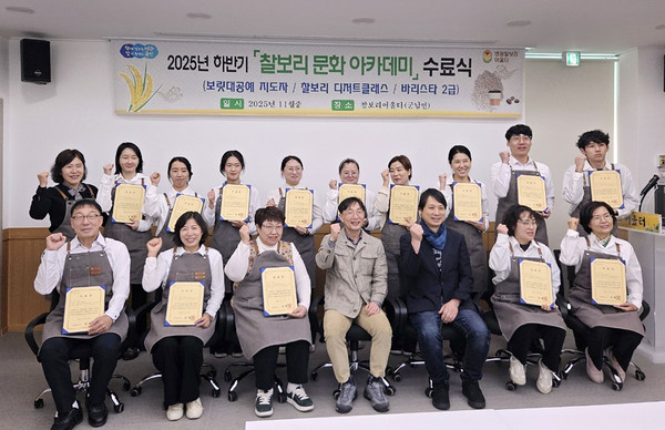 영광군은 지난 14일 ‘찰보리 어울터 문화 아카데미–바리스타 2급 자격증반’ 수료식을 열고 총 15명에게 수료증을 전달했다.